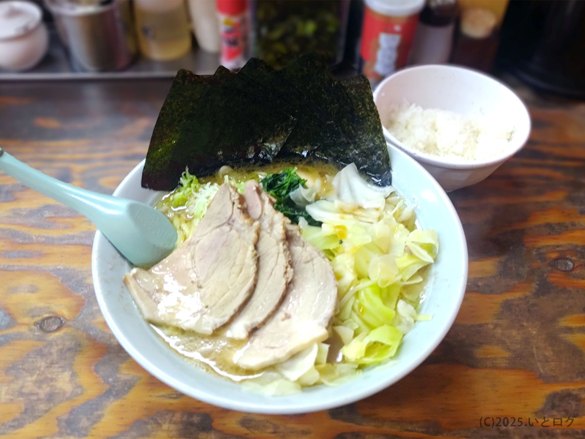 ど真ん中に海苔がピシッと立つ姿は、飯田商店の系譜をしっかり感じさせる。